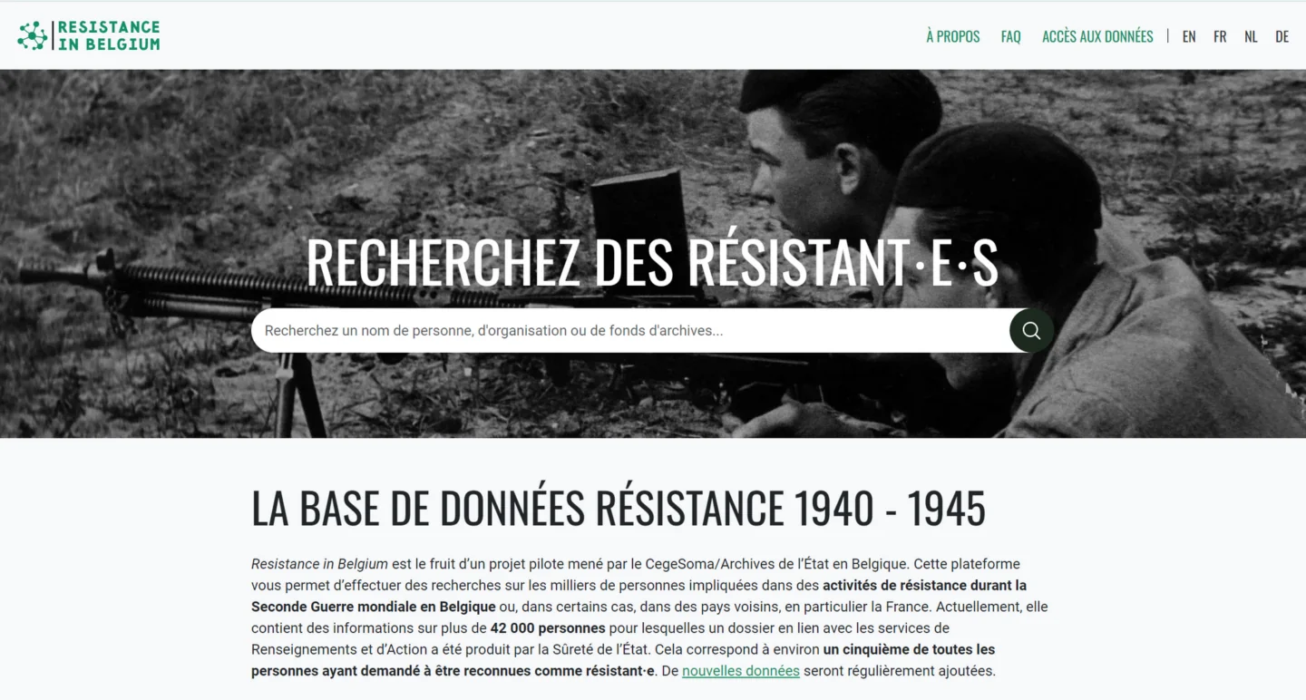 Since late 2020, around 60 people have contributed to this project. We launched the platform in October 2024, and it now hosts over 43,000 biographical entries — mainly on Belgian Resistance members operating in occupied Belgium and France, and in particular those connected to Belgian intelligence services in London. The database will eventually include data on over 200,000 individuals, including contextual data on resistance organisations, archival fonds, and clandestine press, in order to offer a deeper understanding of these networks.
